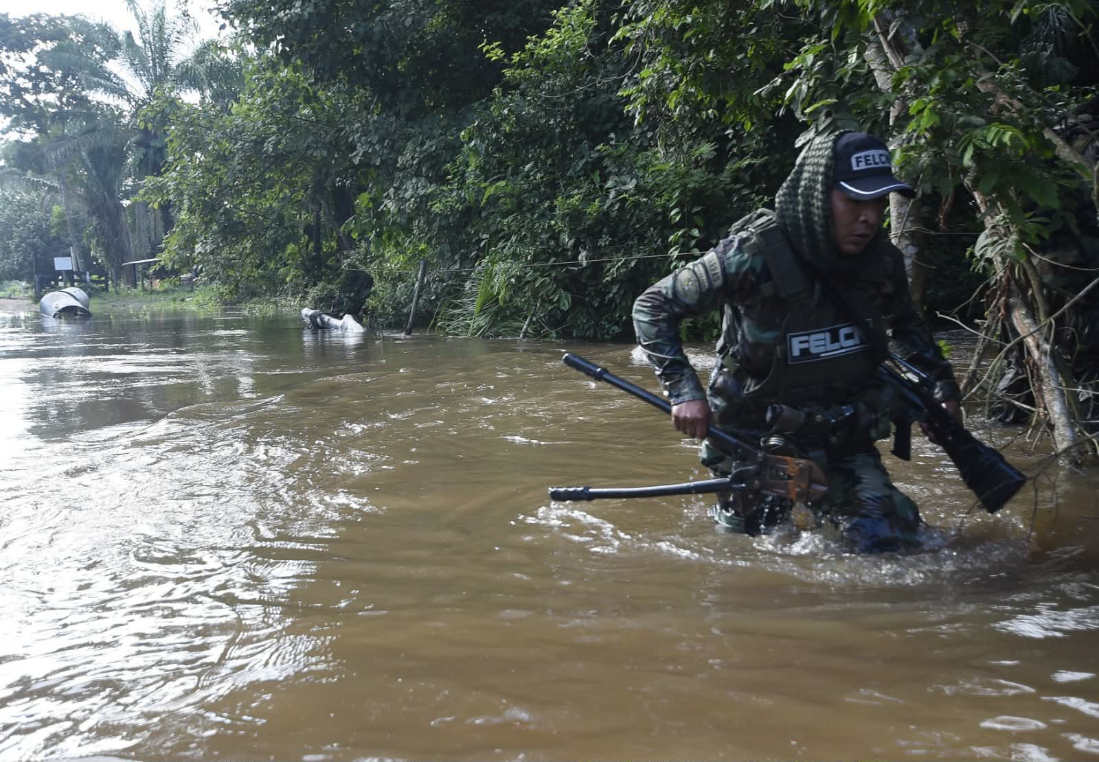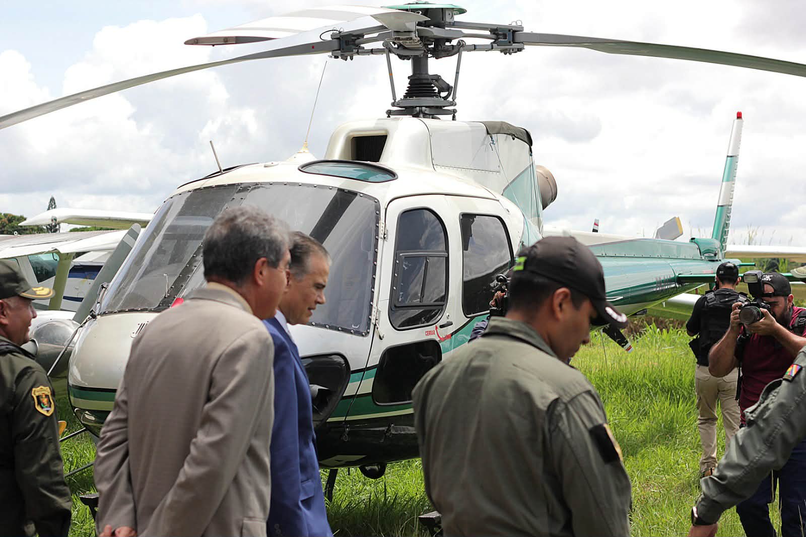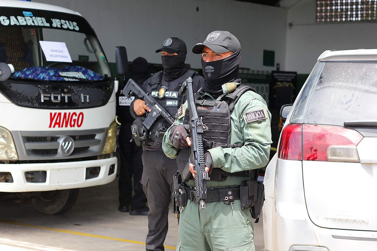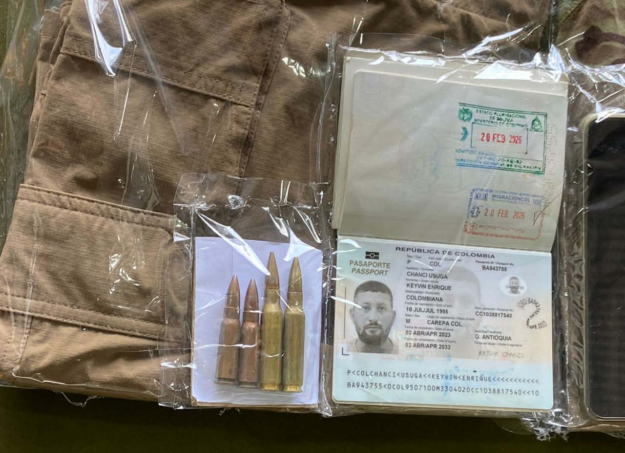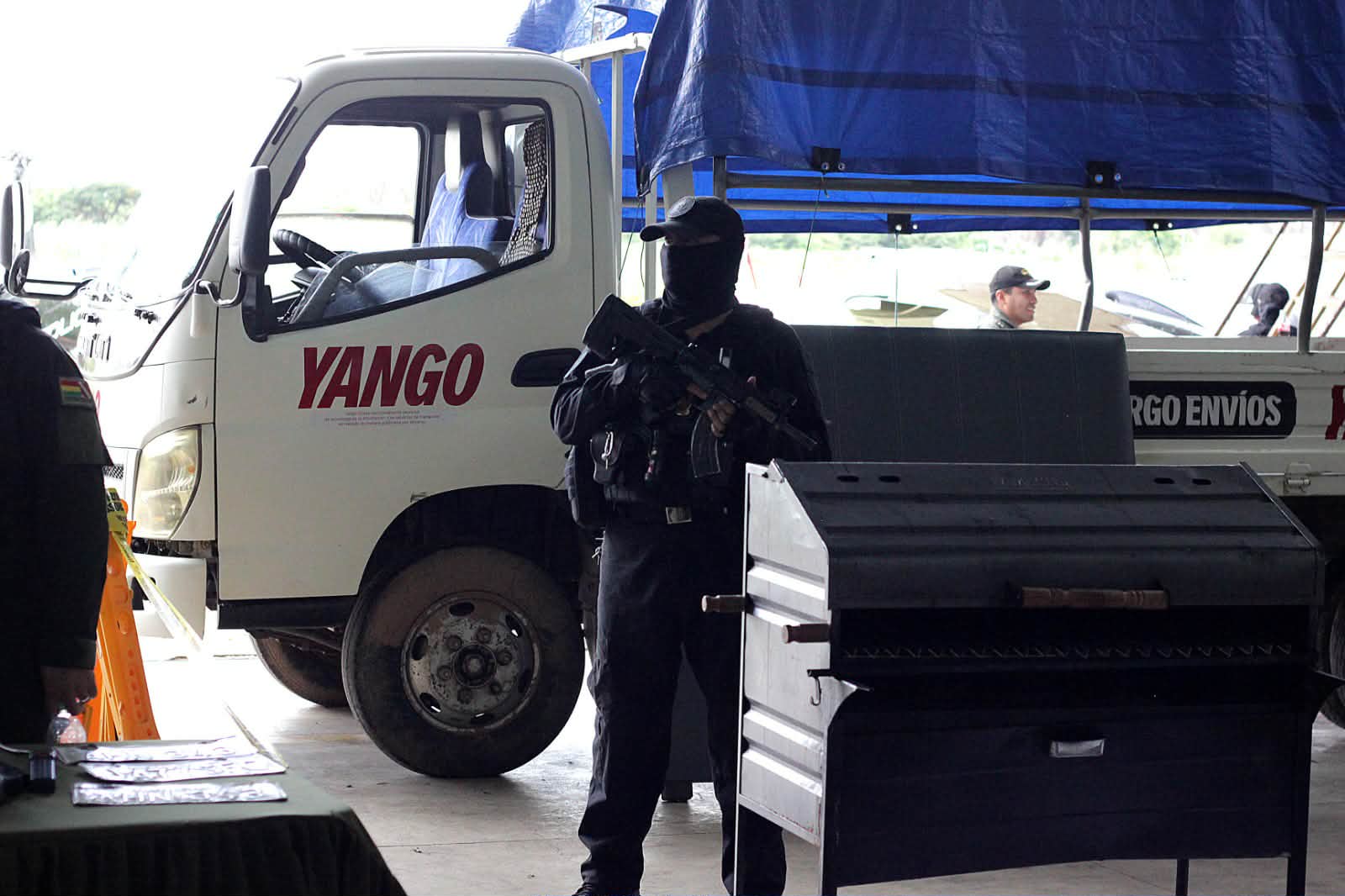 Zar antidrogas Ernesto Justiniano y el viceministro Hernán Paredes, presentaron a 12 aprehendidos que serían del cuerpo de seguridad del narco uruguayo. Un día antes allanaron la base de operaciones de Marset en Portachuelo. (Fotos: Regis Montero/APG)