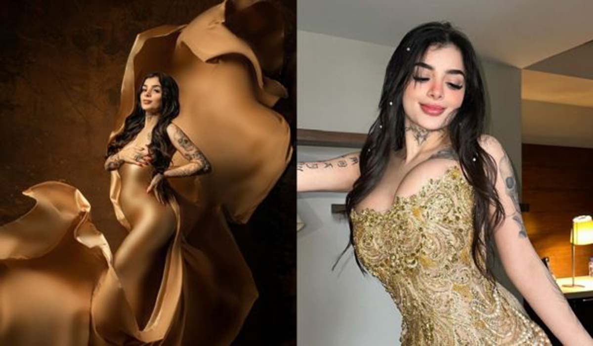 En la imagen que compartió Karely Ruiz se le puede ver luciendo un impresionante vestido en color dorado, pero lo que llamó su atención fue su pancita de embarazo.