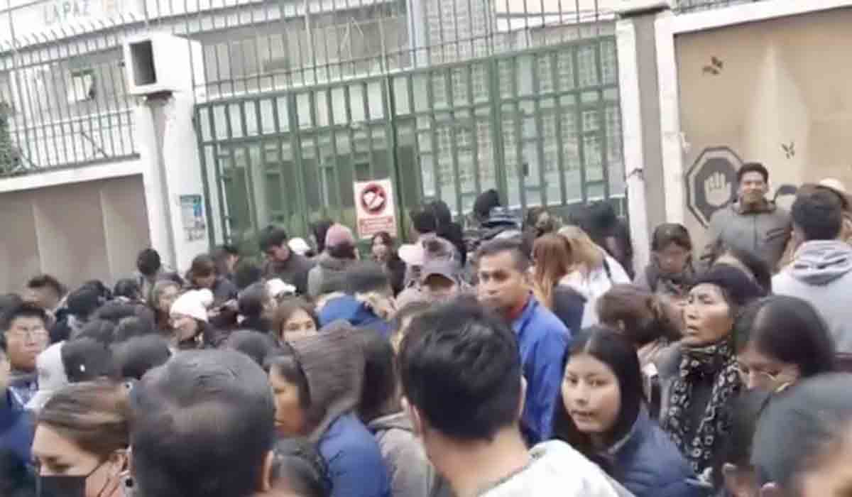 Una situación similar se vivió en El Alto, donde la gente protestaba mientras esperaba poder ingresar. Algunos indicaron que no se habían informado sobre la suspensión del examen, ya que, al no poder ingresar con celulares a dar esta prueba, no tenían cómo enterarse.