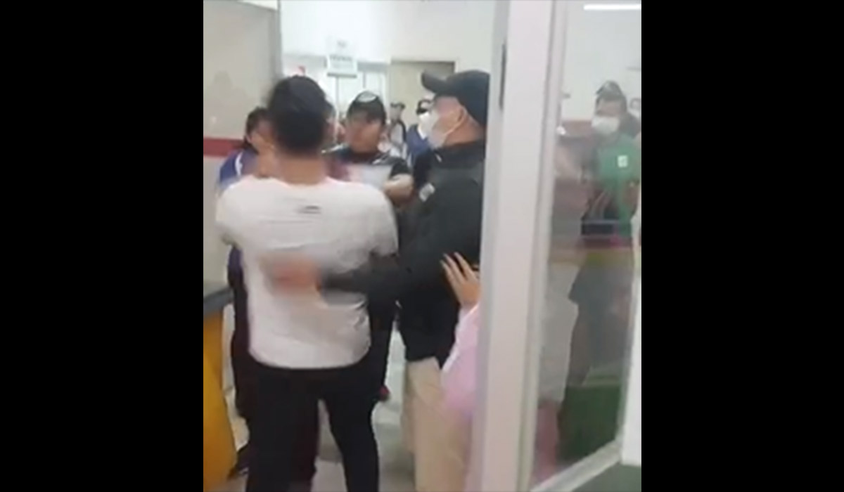 Según testigos, la familia de una paciente en estado delicado exigía que se le asigne una cama. El personal médico explicó que el hospital estaba colapsado y que la paciente debía ser derivada a un hospital de tercer nivel para recibir atención adecuada.