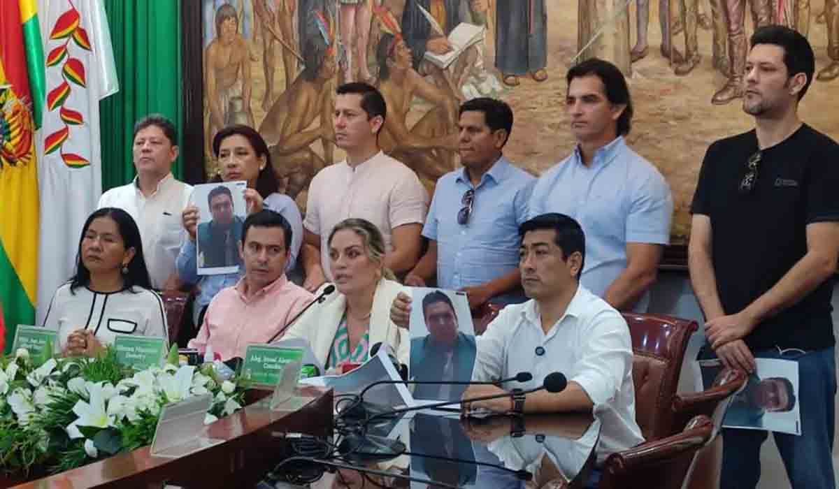 Al respecto, los ediles ucesistas Gabriela Garzón y Miguel Fernández reiteraron que Silvana Mucarzel e Israel Alcócer ya no son concejales, remarcando que fueron notificados por el Órgano Judicial con una demanda de acción de cumplimiento que prohíbe llevar a cabo cualquier sesión ordinaria y/o extraordinaria hasta que se resuelva el asunto.