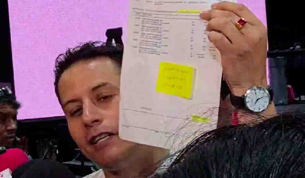 Aseveró que Juan Pablo Velasco cobró Bs364.850, mientras que también recibieron dinero sus familiares. Mostró documentos en fotocopias.