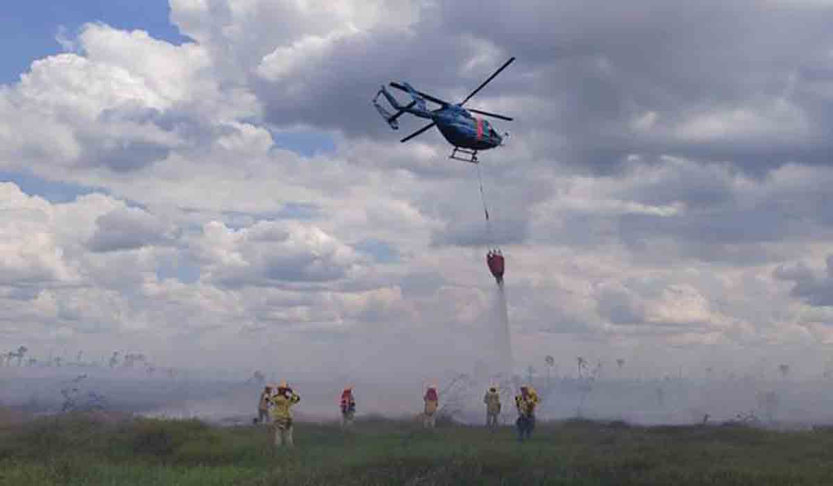 Según el reporte oficial, el helicóptero BK117-C1 “PZHJI” “realizó un total de 35 descargas mediante el sistema Bambi Bucket”, equivalente a 35 mil litros de agua, apoyando directamente las labores de los bomberos forestales desplegados en el terreno.