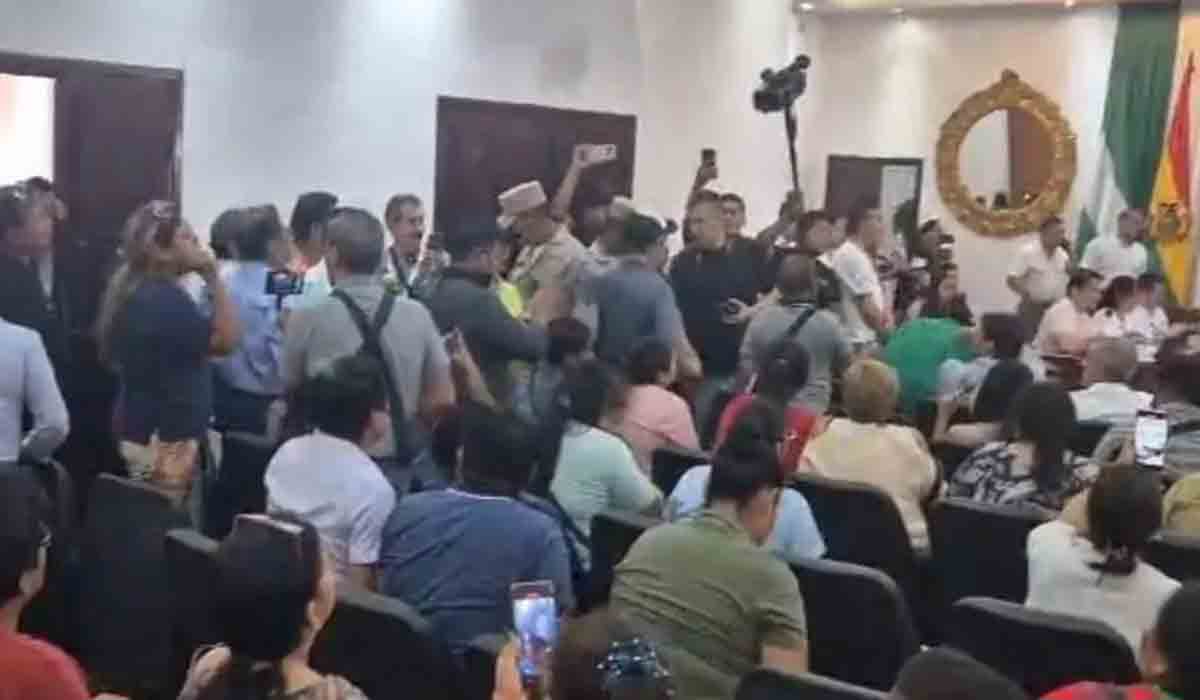 Los comerciantes ingresaron al salón de sesiones en medio de gritos y reclamos, pidiendo ser escuchados por las autoridades municipales. Su principal demanda fue la realización de una audiencia pública para conocer detalles sobre el conflicto por la propiedad de los predios del mercado Mutualista.
