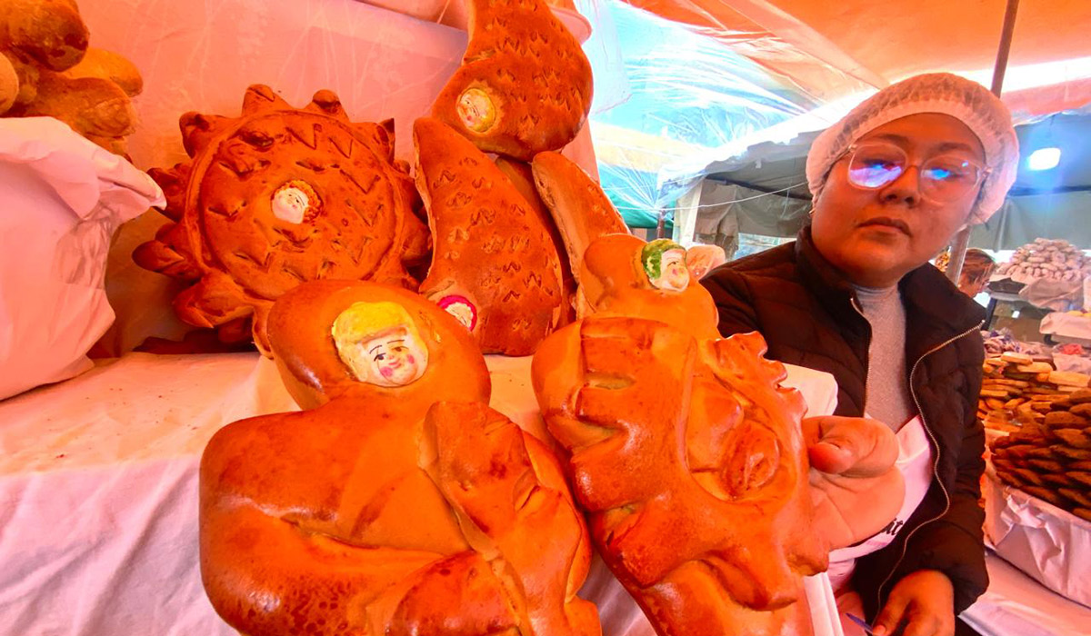 “Los precios están igual que el año pasado, hay para todos los bolsillos”, comenta doña Tita, mientras acomoda una fila de panes en forma de personas.