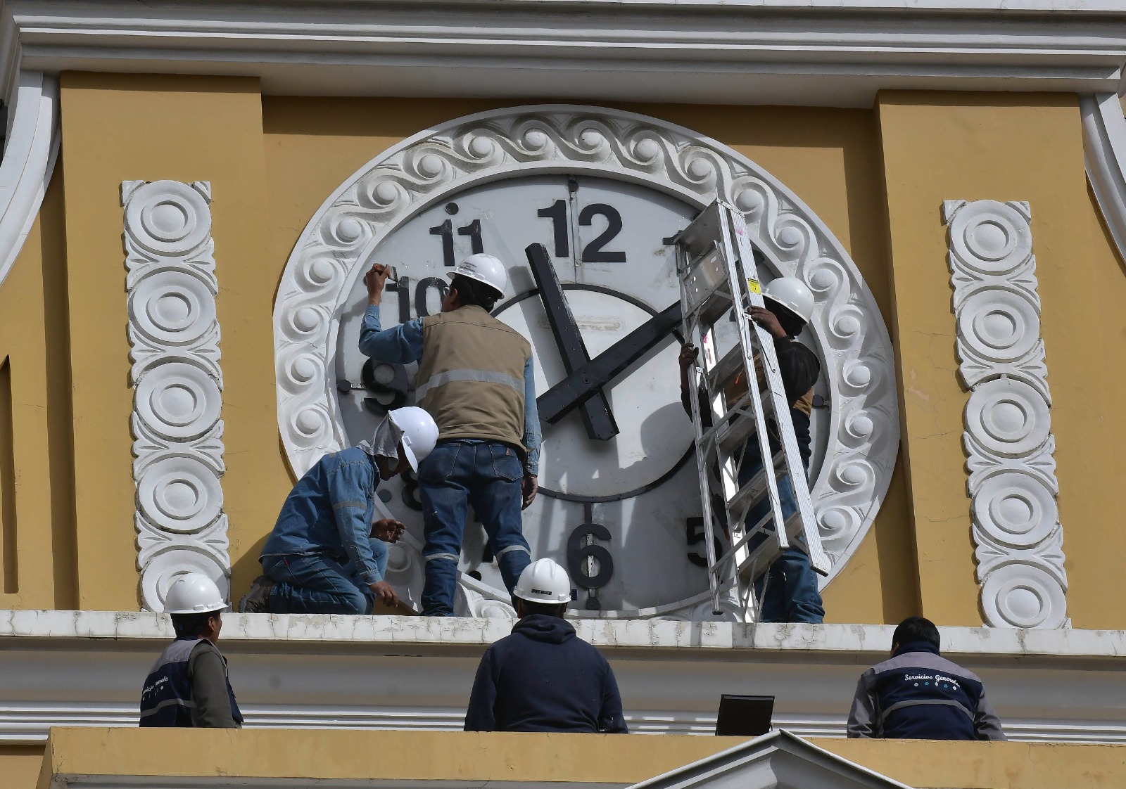 A dos días de la posesión del nuevo Gobierno, las alcaldías de El Alto y La Paz trabajan en refaccionar ambas urbes para recibir a las autoridades y a los invitados internacionales. Una de estas labores es restaurar el reloj del Palacio Legislativo, cuyas manecillas giraban en sentido contrario al habitual desde que fue modificado hace 11 años por el ahora vicepresidente saliente, David Choquehuanca.