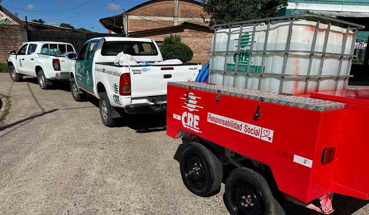 Con el firme compromiso solidario que la caracteriza, la Cooperativa Rural de Electrificación R.L. (CRE) hizo una donación expeditiva para socorrer la necesidad más urgente de la comunidad de Achira, que sufrió las consecuencias del temporal del domingo y lunes. La ayuda solidaria de CRE fue realizada la mañana del miércoles a través de los directores y delegados del Distrito 17 de la Cooperativa, Fredy Cortez y Pedro Manrique, que entregaron 200 litros de agua potable entre las familias afectadas en la comunidad de Samaipata.