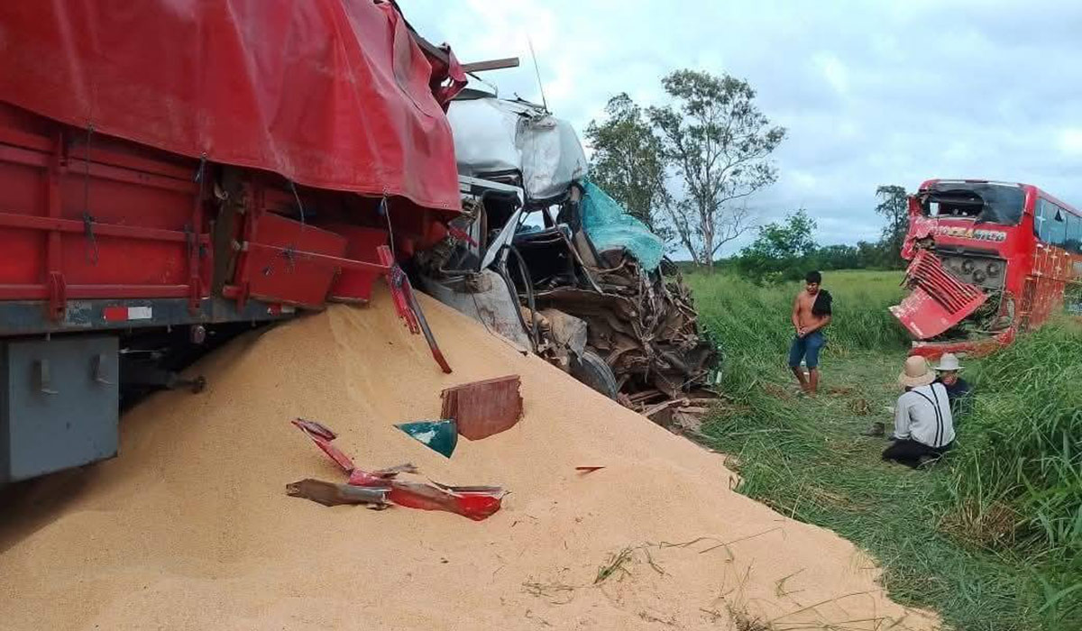 El impacto fue tan fuerte que la carga de soya del camión terminó desparramada sobre la vía, llegando incluso a cubrir parte del cuerpo de la víctima.