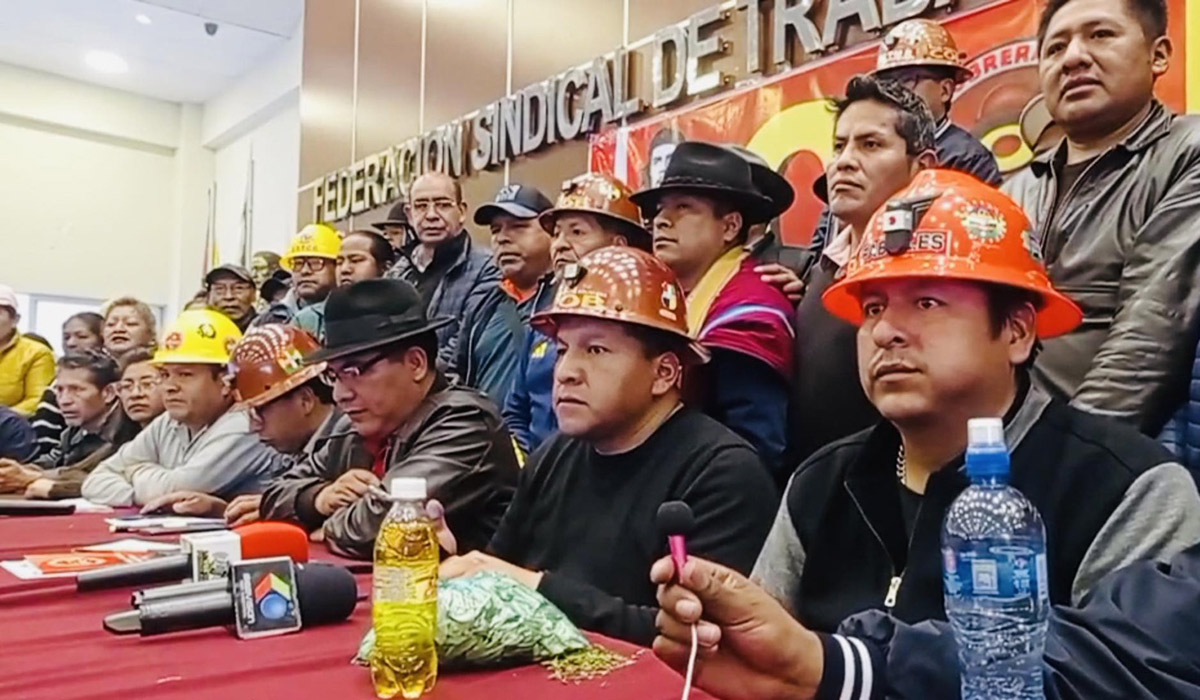 En la misma línea, el dirigente minero convocó a la población a sumarse a las protestas. “Queremos pedirle al pueblo en general que se una a esta marcha porque es a favor de todos los bolivianos. No podemos dejar que enajene nuestros recursos naturales, no podemos dejar que viole la Constitución Política del Estado”, dijo.
