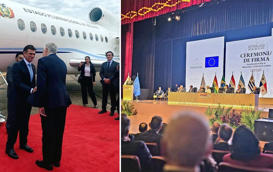 Rodrigo Paz Pereira realizó este sábado su primer viaje al exterior como presidente de Bolivia para participar en la firma del histórico acuerdo comercial entre el Mercado Común del Sur (Mercosur) y la Unión Europea (UE), que se realiza en Asunción de Paraguay.