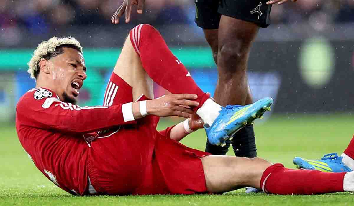 El jugador de 23 años se tocó el tendón de Aquiles mientras el personal médico le atendía antes de ser retirado en camilla en Anfield, donde el Liverpool perdió por 2-0 en el partido de vuelta de cuartos de final, quedando eliminado de la competición con una derrota global por 4-0.