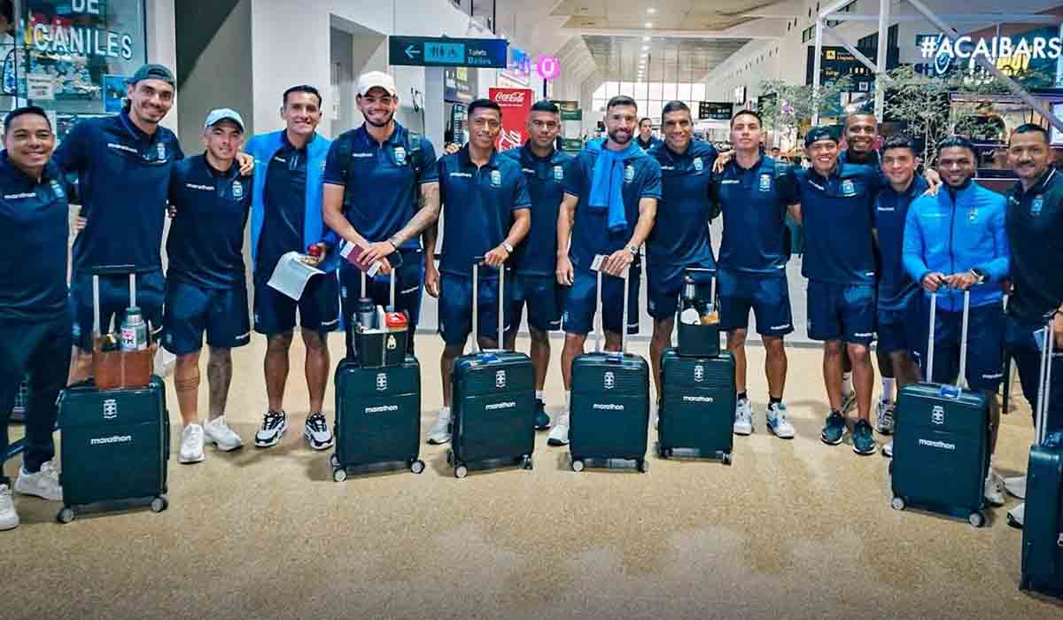 Parte del plantel de Blooming en el aeropuerto Viru Viru. Foto: Club Blooming.