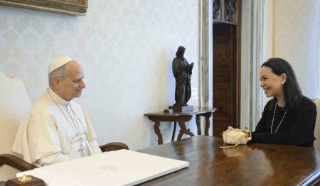 La líder opositora venezolana pidió al pontífice que haga de mediador por los presos políticos y por la transición en el país. "Está más cerca la derrota del mal" en Venezuela, le dijo en audiencia privada a León XIV.