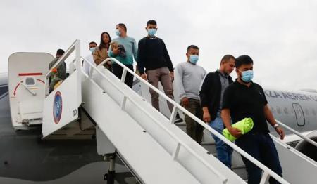 Migrantes colombianos regresan a su país en un vuelo de repatriación.