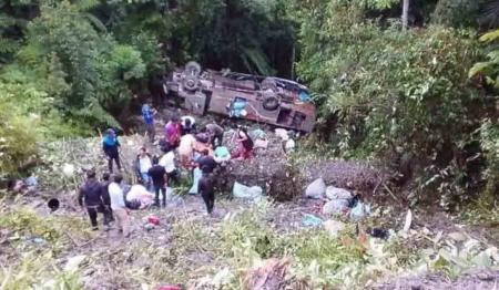 El alcalde de Apolo, Rully Ciro Jiménez, indicó que un bus de la empresa Velo de Novia que transportaba pasajeros de La Paz a Apolo sufrió un accidente en la zona denominada como la “Curva del Diablo”
