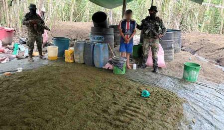 La Felcn realizó patrullajes en el municipio y logró ubicar e incinerar fábricas rústicas e insumos químicos empleados en la elaboración de sustancias controladas.