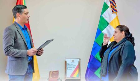 Edmand Lara y Rodrigo Paz en el acto de posesión del gabinete. Foto: ABI