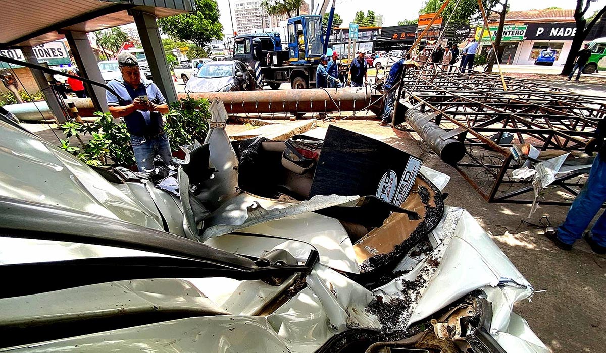 Un letrero gigante cayó este martes en la avenida Cristo Redentor, entre segundo y tercer anillo, sobre tres vehículos en una jornada en que la ciudad de Santa Cruz de la Sierra soporta fuertes vientos. Además se reportaron al menos 20 casos de caídas de árboles, que afectaron viviendas y bardas.