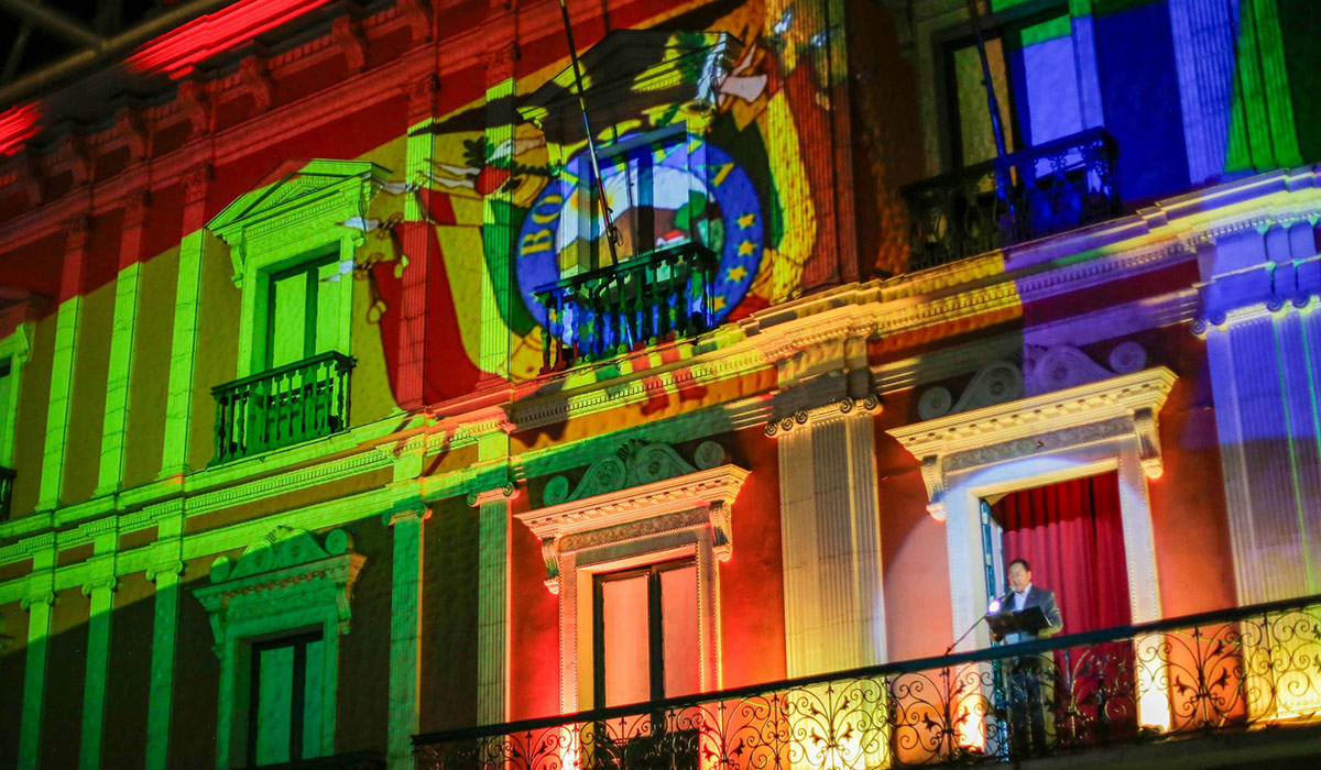 El evento, organizado a 200 días del 6 de agosto, incluyó presentaciones culturales como bailes folclóricos y un espectáculo de mapping proyectado sobre el Palacio Quemado.