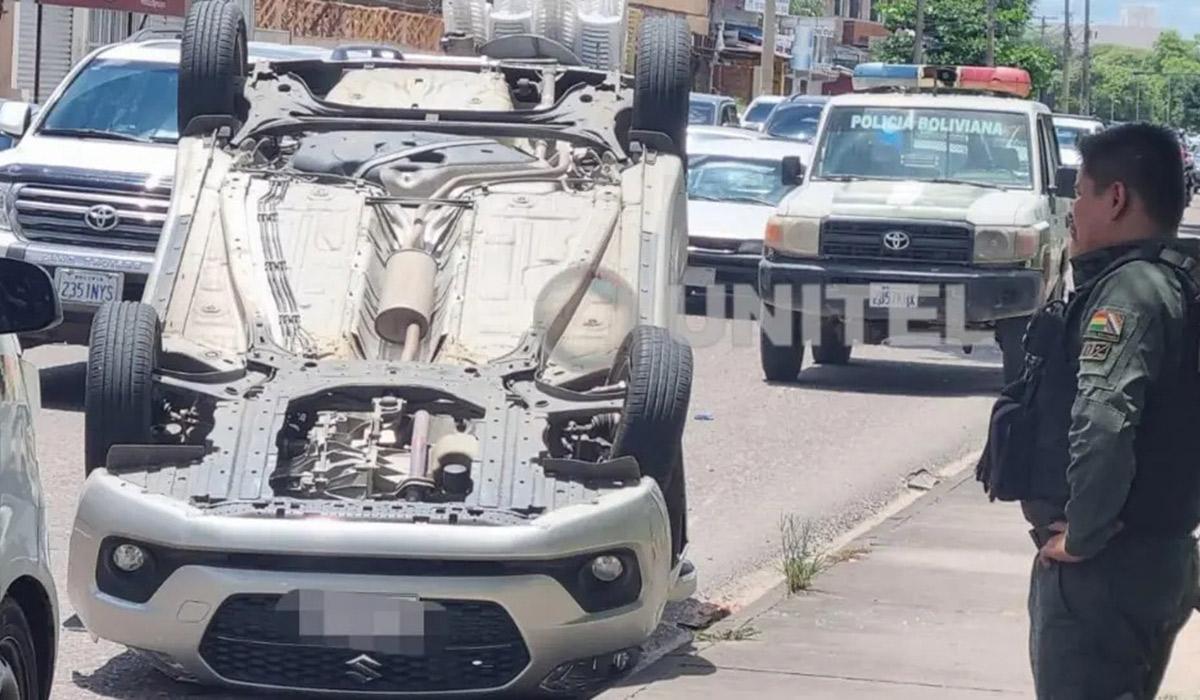 Un accidente de tránsito ocurrido cerca del mediodía de este lunes dejó un vehículo volcado en el cuarto anillo de la capital cruceña, entre las avenidas Paraguá y Mutualista, en la zona norte de la ciudad.