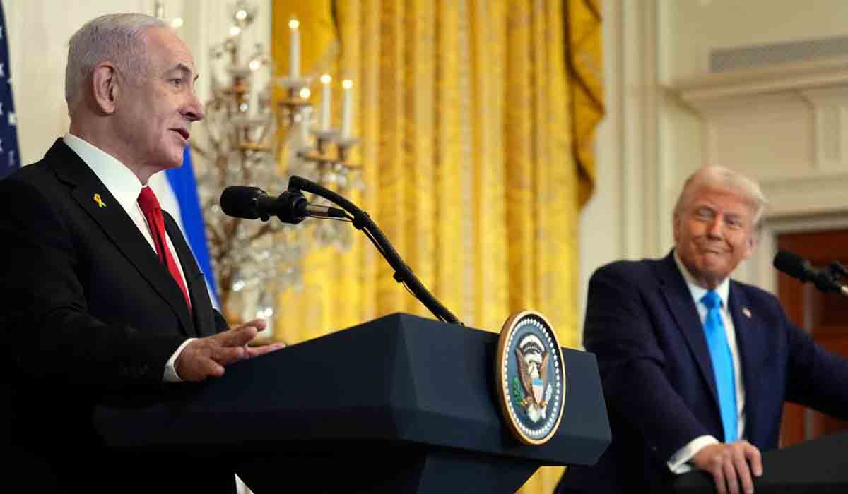 En un discurso en cierto modo cronológico, durante el que Trump permaneció en silencio a su lado, Netanyahu comenzó a enumerar el traslado de la Embajada estadounidense y el reconocimiento de Jerusalén como capital de Israel, algo que el mandatario ya hizo en 2018; así como el reconocimiento de la soberanía israelí sobre los ocupados Altos del Golán sirios o los Acuerdos de Abraham, en los que Israel hizo la paz con cuatro Estados árabes.