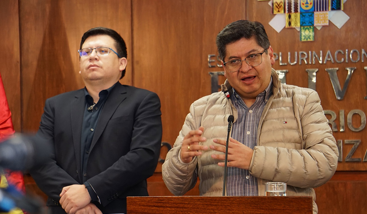 Los ministros de Economía, Marcelo Montenegro; y de Planificación, Sergio Cusicanqui, brindaron una conferencia de prensa conjunta donde cuestionaron que algunos legisladores le hayan “dado la espalda” al país al rechazar el proyecto de ley.
