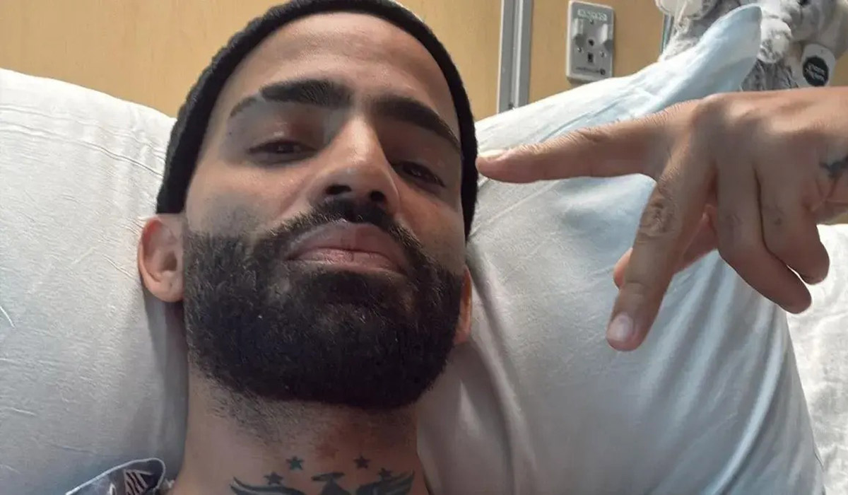 En la posteo, el artista compartió una fotografía desde la camilla del hospital, mostrando las secuelas de la operación. También publicó una imagen junto a un médico y un video de su salida del hospital.