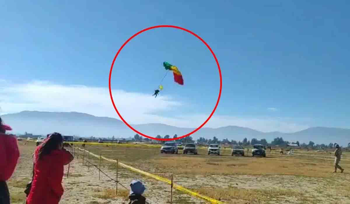 Eva M.P. (25 años), miembro del Ejército, daba varias vueltas en el aire, poco antes de que cayera al suelo durante un curso de paracaidismo en San Benito, Valle Alto de Cochabamba. La caída le provocó heridas graves y ahora está internada en terapia intensiva.