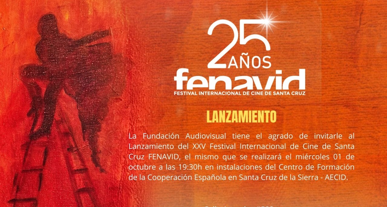 El Festival Internacional de Cine de Santa Cruz FENAVID, el encuentro cinematográfico más importante de Bolivia y uno de los más destacados de Latinoamérica, realizará este miércoles 1 de octubre el lanzamiento oficial de su vigésima quinta edición en el Centro de Formación de la Cooperación Española (AECID).