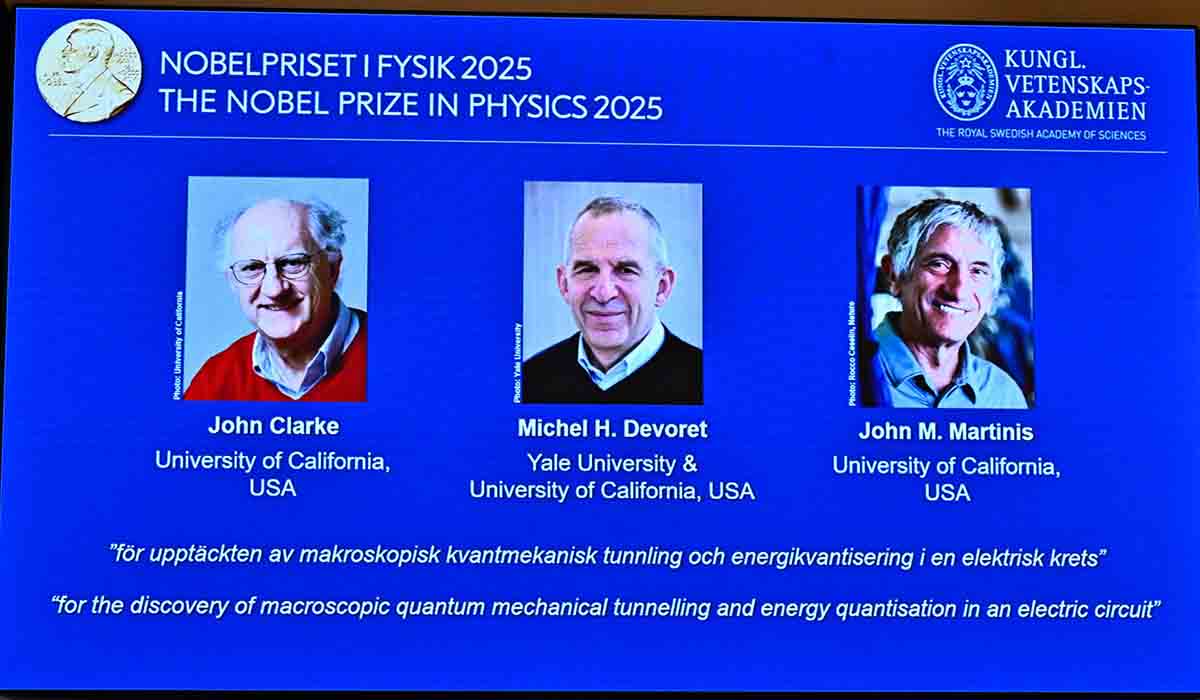 La Real Academia de las Ciencias de Suecia otorgó este martes el Premio Nobel de Física a los científicos John Clarke, Michel H. Devoret y John M. Martinis por "el descubrimiento de la tunelización mecánica cuántica macroscópica y la cuantificación de energía en un circuito eléctrico".