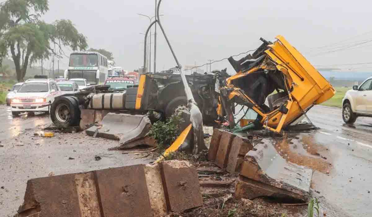 Debido a la fuerza del impacto, la cabina prácticamente se destrozó y la estructura de todo el vehículo quedó sobre ambos carriles lo que provocó que el tráfico se vea afectando temporalmente.