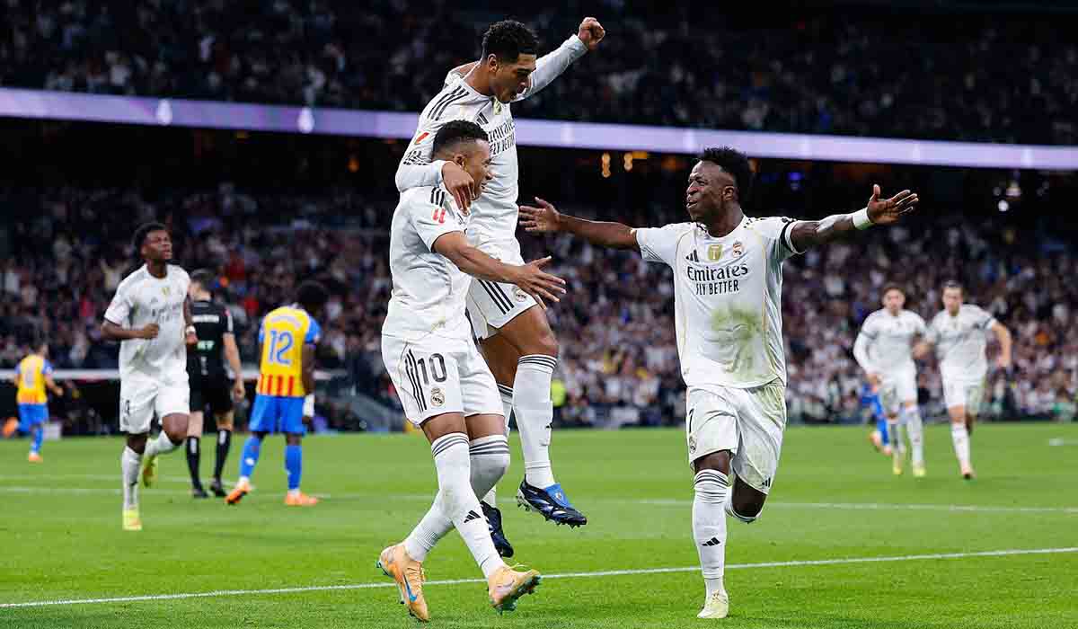 El Real Madrid goleó al Valencia (4-0) en una noche de fiesta para Kylian Mbappé. Celebró con su afición la Bota de Oro que se le entregó el viernes, marcó un doblete que pudo ser triplete, pero le dejó el segundo penalti a un Vinícius que, en el foco por su comportamiento tras ser sustituido en el clásico, lo falló. Y Bellingham y Carreras completaron el marcador ante un Valencia abatido.