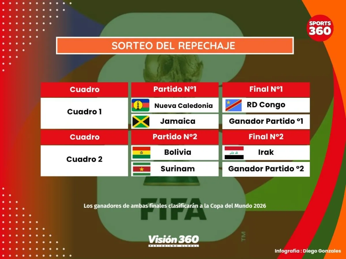 Bolivia ya conoce el camino que debe seguir en el repechaje de marzo próximo en México para buscar quedarse con una de las dos plazas que darán acceso a la Copa del Mundo 2026. Primero se enfrentará a Surinam y si gana su partido luego jugará contra a Irak.