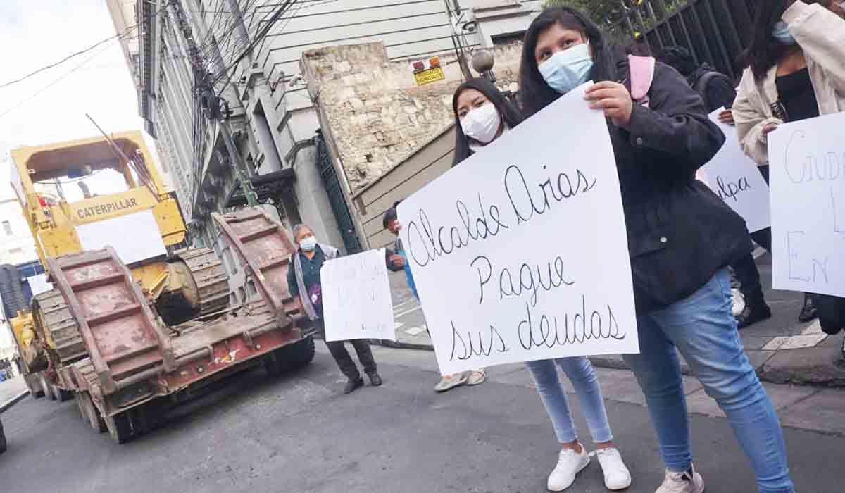 El representante de empresas, Eduardo Ticona, informó la deuda corresponde al trabajo realizado en época de lluvias durante cuatro años. “Nos encargamos de salvar las vidas y las casas de la p oblación con la maquinaria. Nos deben cuatro años y no les pagan, otros de dos años o tres años. Hoy en día salió el alcalde a decir que ya se nos había pagado, no es cierto. Señor Arias es un mentiroso”.