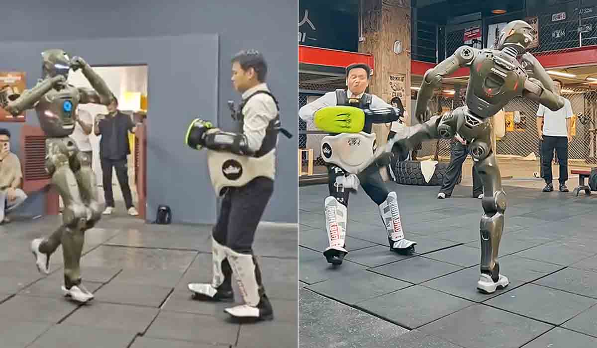 El registro muestra como preparan a Zhao Tongyang siendo pateado por el robot, que lo derribó fácilmente, “muy brutal”, manifestó el empresario, “sin protección, cualquiera podría quebrarse un hueso”, añadió.