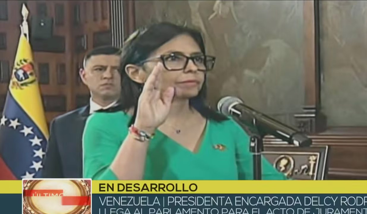 Durante el acto, Rodríguez calificó la detención de Maduro y de su esposa como un “secuestro” y afirmó que asumía el cargo “con dolor”.