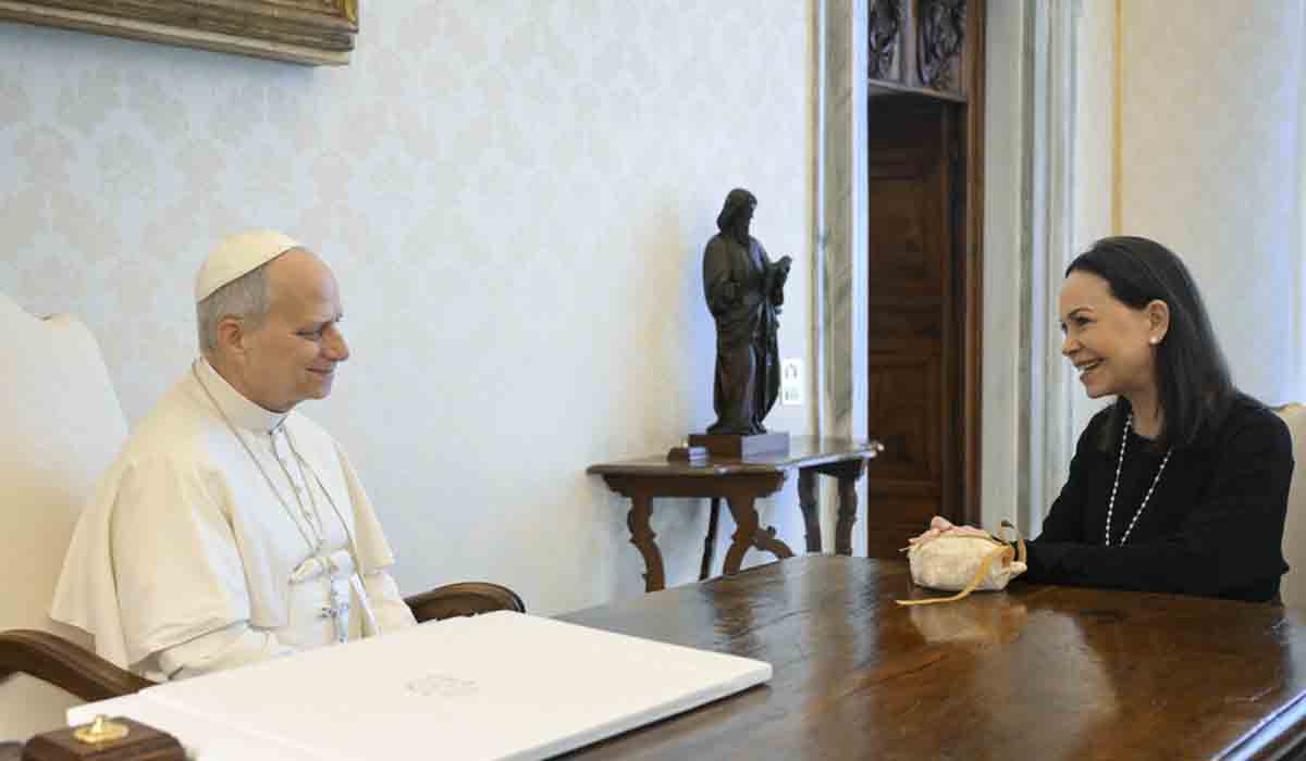 La oposición venezolana divulgó poco después fotografías del encuentro en las que se puede ver a Machado con un vestido negro y portando un rosario. A su lado está el papa. La opositora es vista por sectores venezolanos como portadora de esperanza para propiciar un cambio de régimen en el país, aunque la decisión de Donald Trump de respaldar a la chavista Delcy Rodríguez como presidenta interina de Venezuela supuso un balde de agua fría para esas aspiraciones.