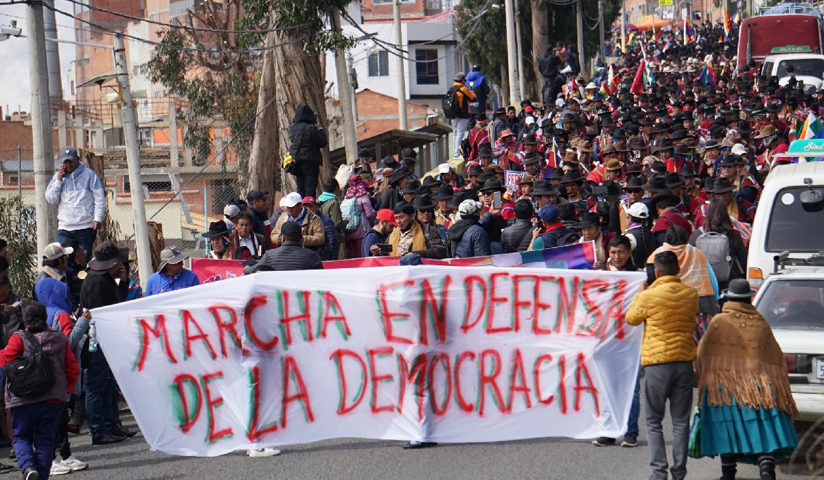 La marcha convocada por el excandidato a la Gobernación de La Paz René Yahuasi llegó desde El Alto hasta las puertas del Tribunal Supremo Electoral (TSE) la tarde de este miércoles. La movilización exige la realización de una segunda vuelta.
