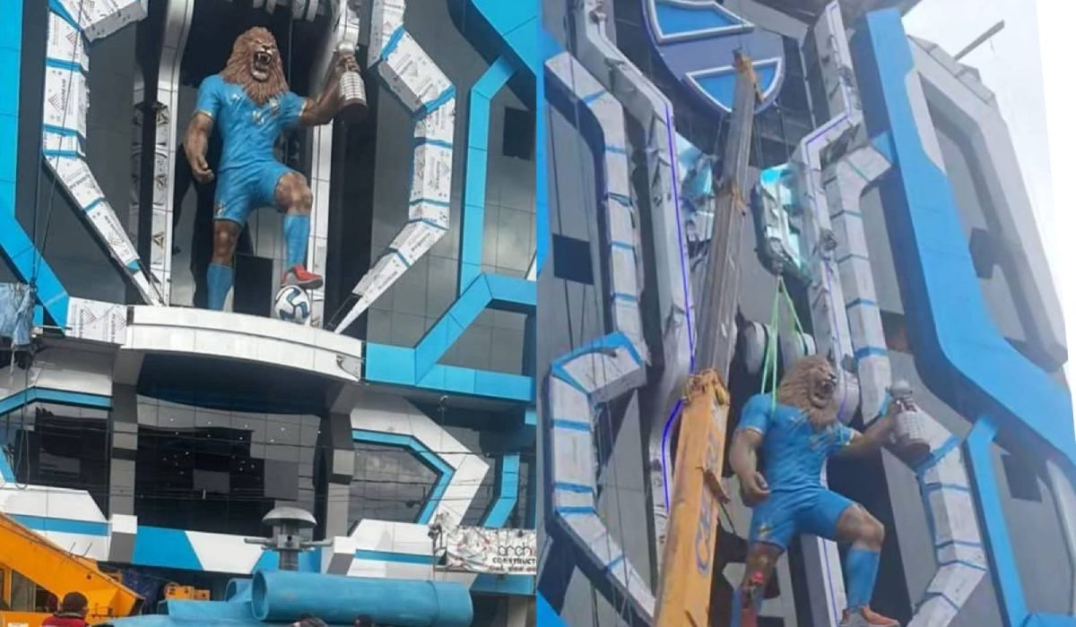 El edificio contará con diez pisos, ambientes temáticos dedicados al club —como el salón de fiestas “Rey de Copas” y un hotel con identidad celeste—, además de detalles imponentes como un león gigante en la entrada y un helipuerto en la parte superior.