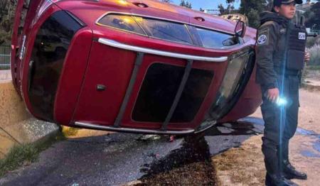 Efectivos policiales llegaron al lugar e informaron que no encontraron a ninguna persona al interior del vehículo. El motorizado presentaba vidrios rotos y combustible derramado sobre la vía.