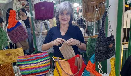 En medio del dolor, encontró refugio en el arte de tejer y ahora ofrece una variedad de carteras en el stand del Comité Cívico Femenino de la Expocruz 2025.